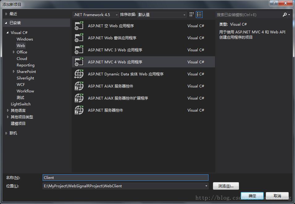 2、在WebClient解决方案下新建一个名为Clinet mvc项目